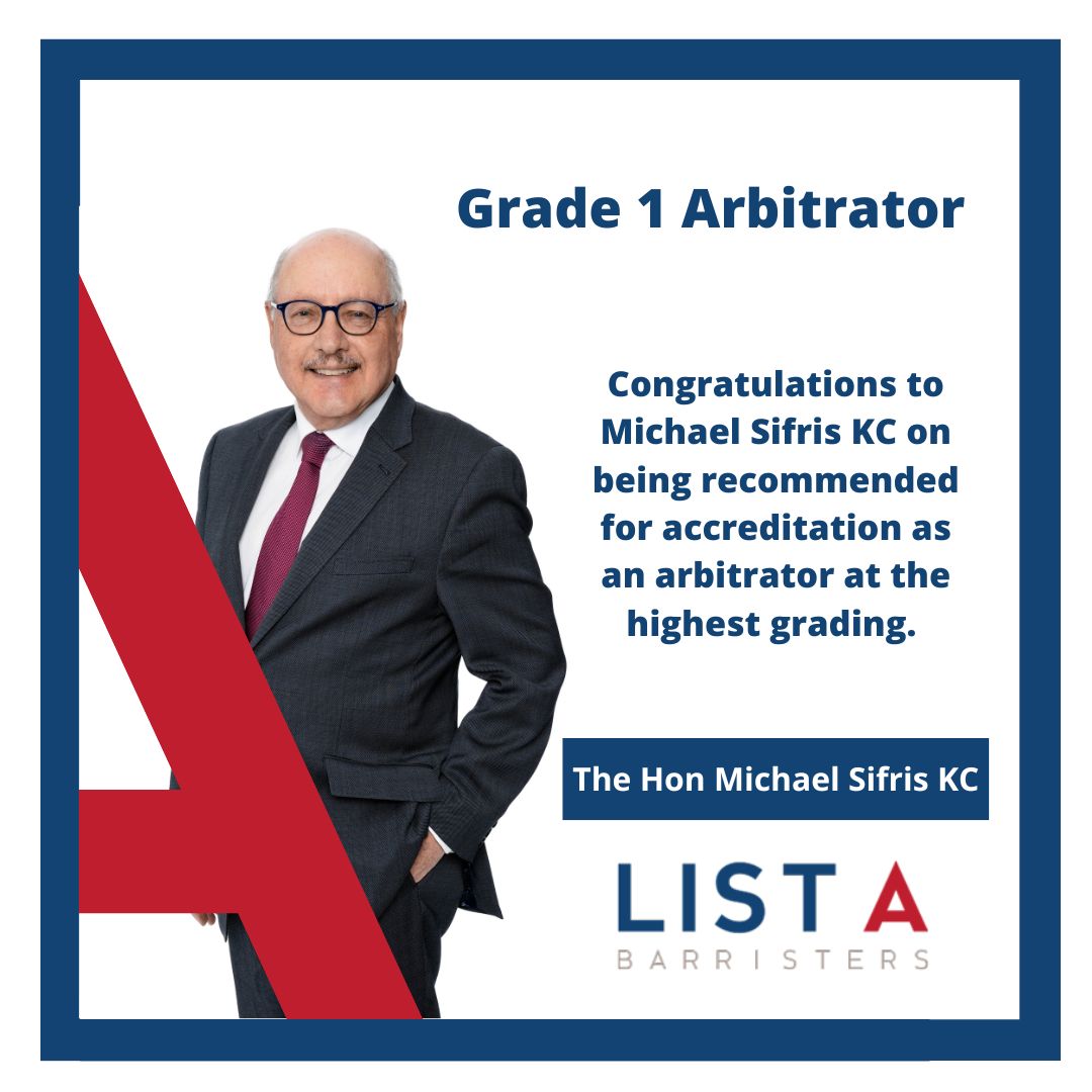 List A congratulates the Honorable Michael Sifris KC on his recent accreditation as a Grade 1 Arbitrator, the highest grading.