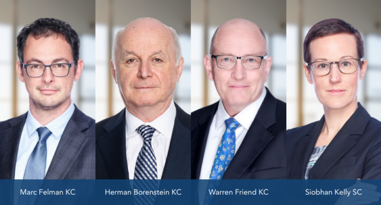 List A Barristers congratulates Marc Felman KC, Herman Borenstein KC, Warren Friend KC, and Siobhan Kelly SC on their recognition in the 2026 Doyle’s Guide for leading Employment Law Senior Counsel in Victoria.