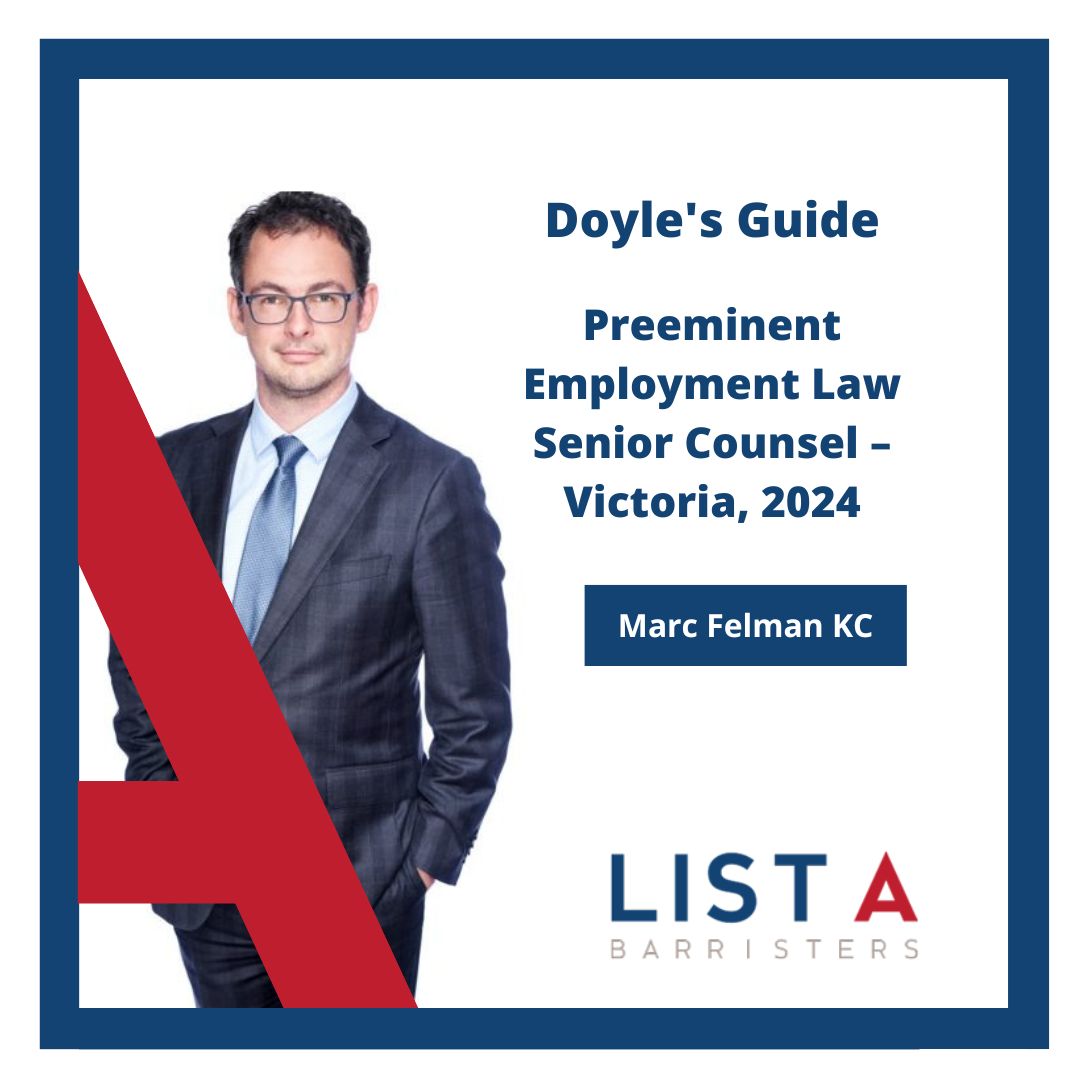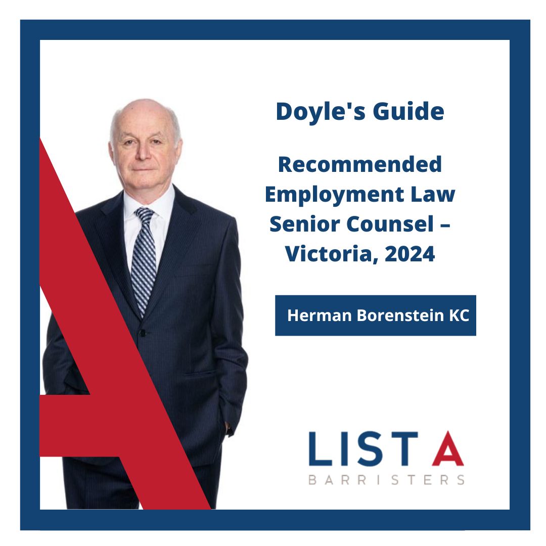 List A congratulates Herman Borenstein KC and Marc Felman KC on being named by Doyle’s Guide as leading employment law Senior Counsel in Victoria in 2024.