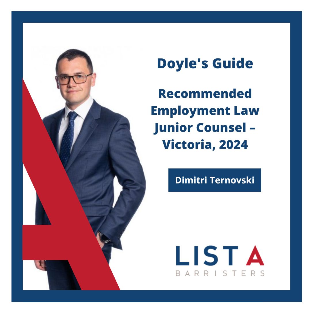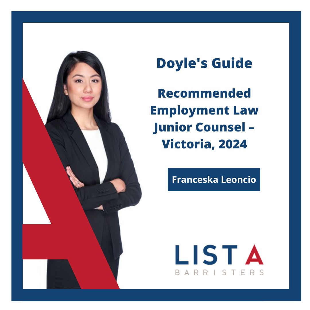 List A also congratulates Siobhan Kelly, Franceska Leoncio and Dimitri Ternovski on being named by Doyle’s Guide as leading employment law Junior Counsel in Victoria in 2024.