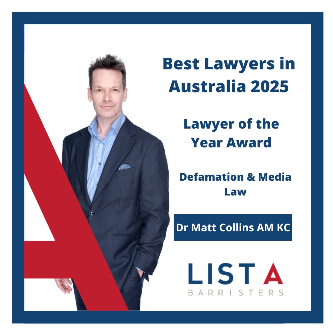 - Dr Matt Collins AM KC in the area of Defamation and Media Law
