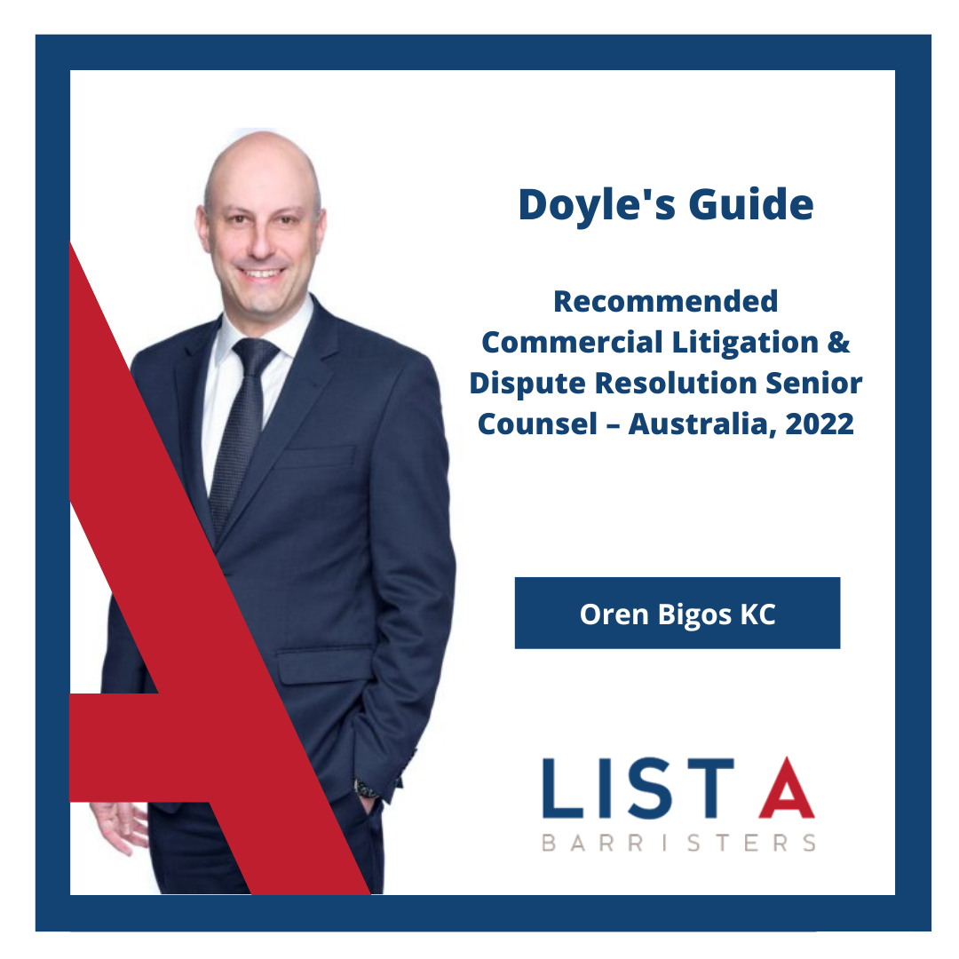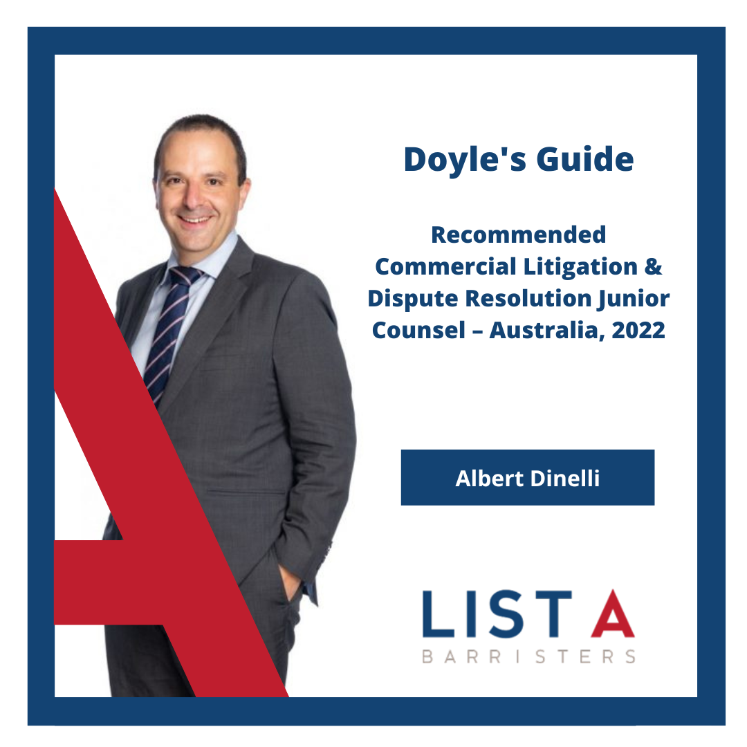 List A congratulates the 10 members of the List named by Doyle’s Guide as the leading senior counsel and junior counsel practising in Commercial Litigation & Dispute Resolution in Australia in 2022.
