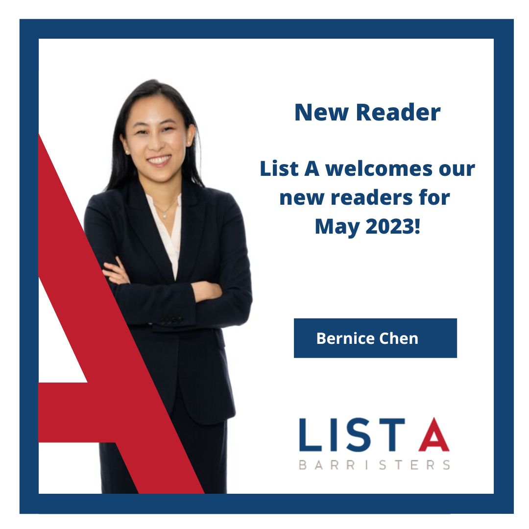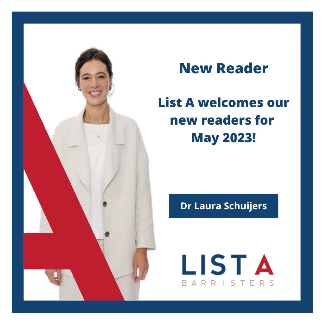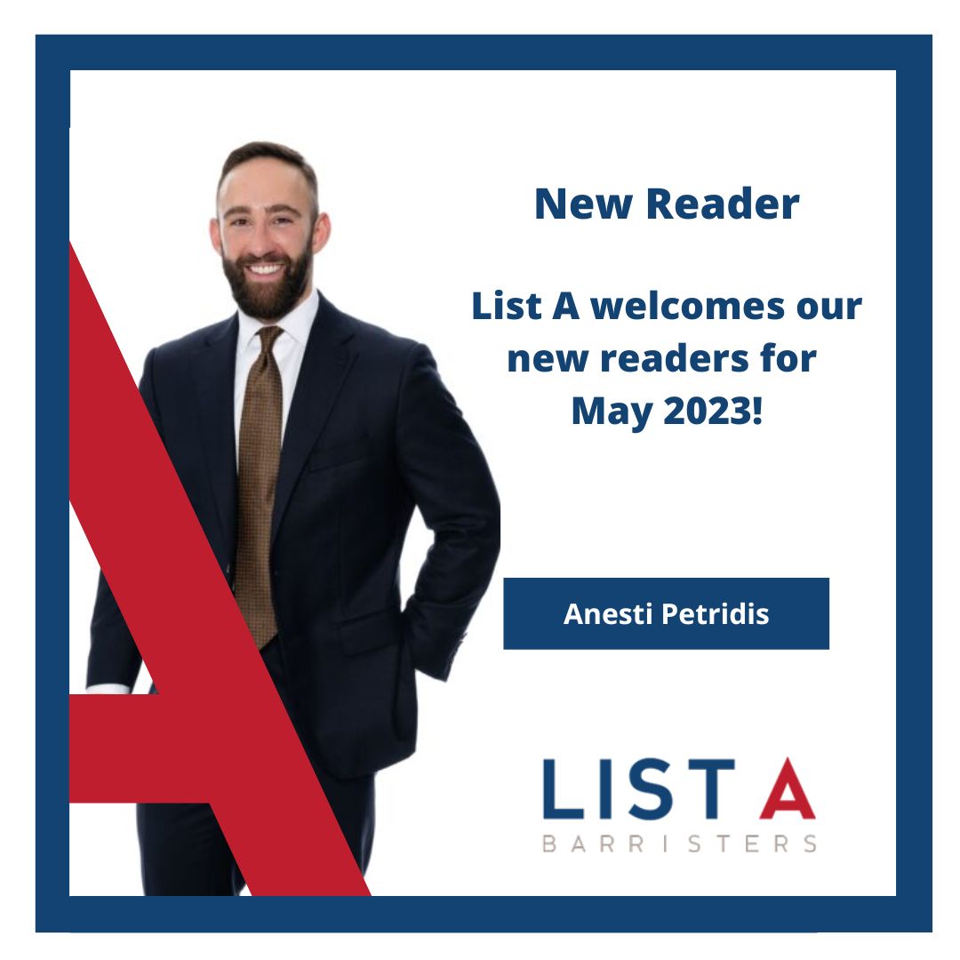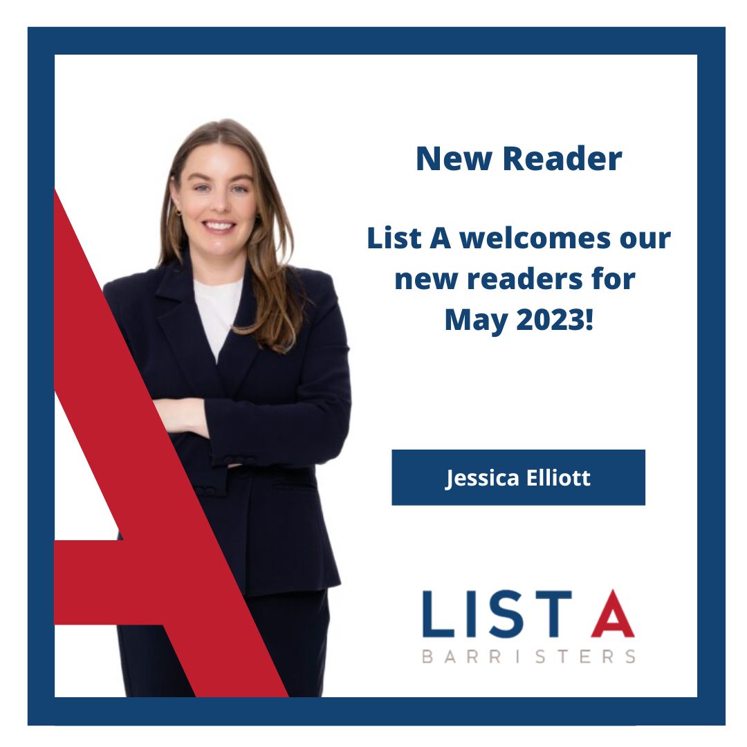 From 5 May 2023, each of our new readers will be able to accept briefs. Please call the List A office on 03 9225 8444 to speak with one of our clerks.
